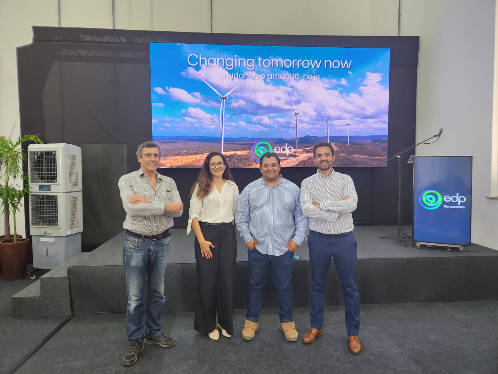 Today was the inauguration ceremony of Edp's Monte Verde wind farm (330Mw installed capacity) attended by Gonçalo Sousa Soares, Flavio Barreiro, Giovani Maciel (GE of the project and now starting Monte Verde solar) and Marise, the environmental coordinator of Monte Verde solar. After the ceremony GSS and Flavio visited the Monte Verde solar and Catanduba wind power teams, both ongoing Edp projects.
