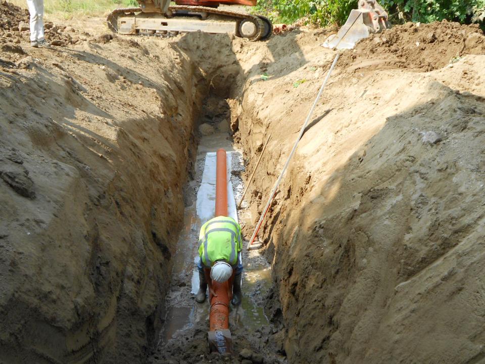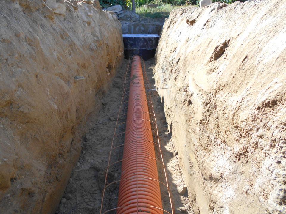 Execução dos intercetores gravíticos de Cancelo/Regilde, de Raposeira e de Sendim, num total de cerca de 5,6km em polipropileno corrugado (PP-C) DN200mm, envolvendo um sifão invertido para a travessia do Rio Bugio, no Concelho de Guimarães.
