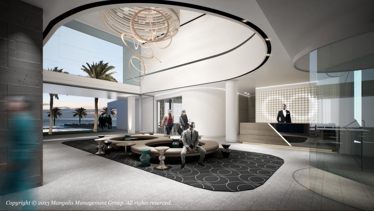 - Os restantes 4 pisos superiores, abrangem a área dos quartos, ginásio e uma sala vip.