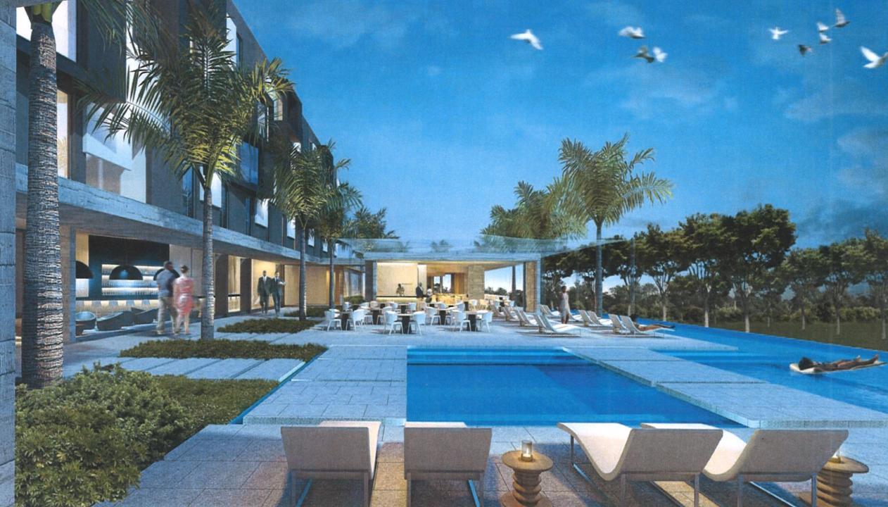 - No piso 0 tem a receção, sala de conferências, restaurante-bar, esplanada com piscina, área de armazém, cozinha e administração