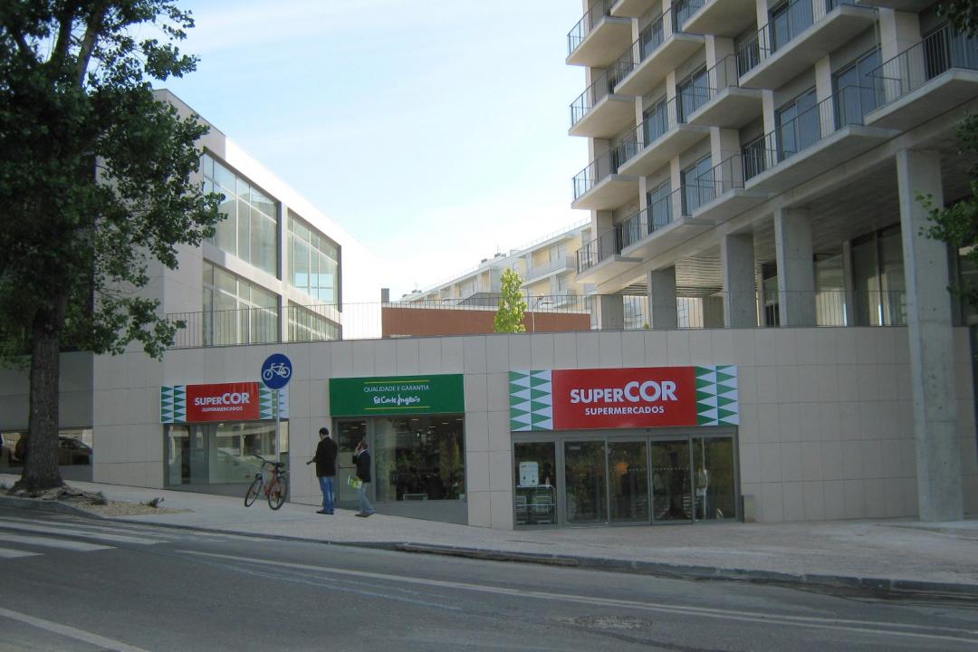 Instalação e Construção do Espaço Comercial do Supermercado SuperCOR, com uma área de 2.100m² e 120 lugares de estacionamento, no Restelo Business Center, Av. Ilha da Madeira em Lisboa.
