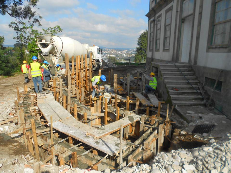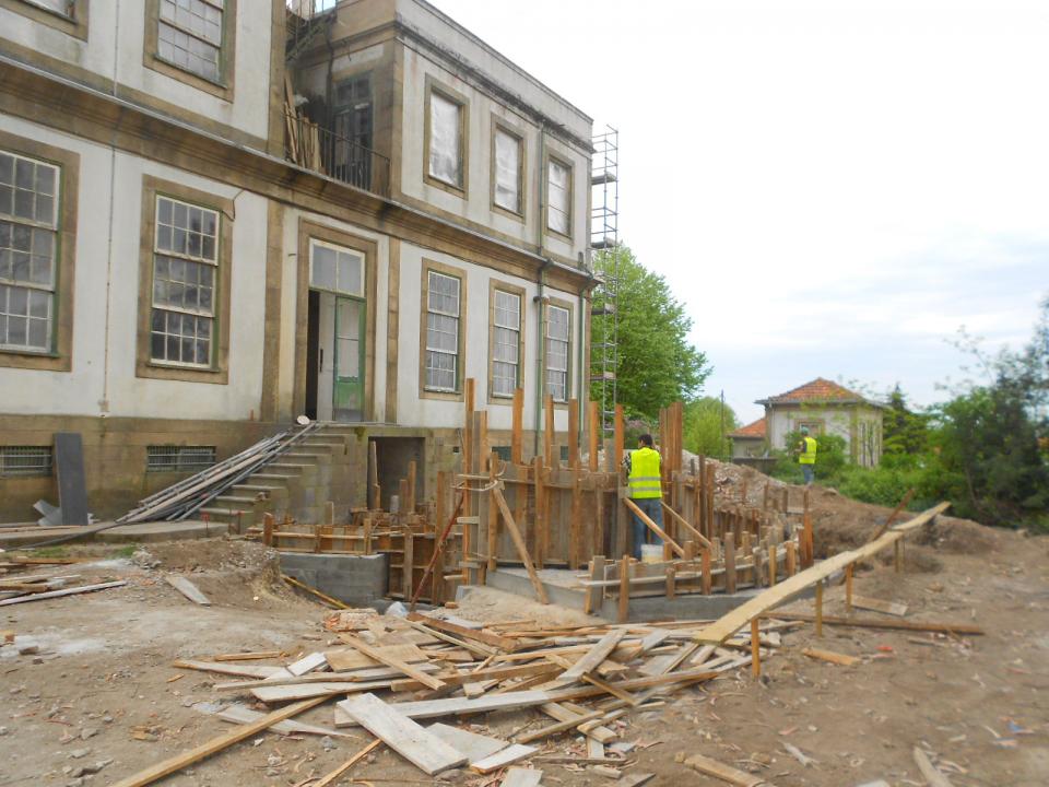 Construtivamente o edifício, não obstante encontrar-se anteriormente desocupado, apresentava estado de serviço razoável, tendo-se procedido à reabilitação das fachadas em alvenaria de pedra rebocada, revestimentos interiores nos tabiques existentes, recuperação de carpintarias e soalhos, da estrutura secundária da cobertura, prevendo impermeabilização da mesma, bem como reforços pontuais de padieiras, execução de instalações sanitárias, de um elevador no interior, e ainda estacionamento no terreiro exterior.