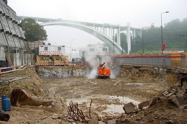 Escavação e contenção da encosta e contenção provisória das caves para a construção do Edifício da Rua do Ouro.