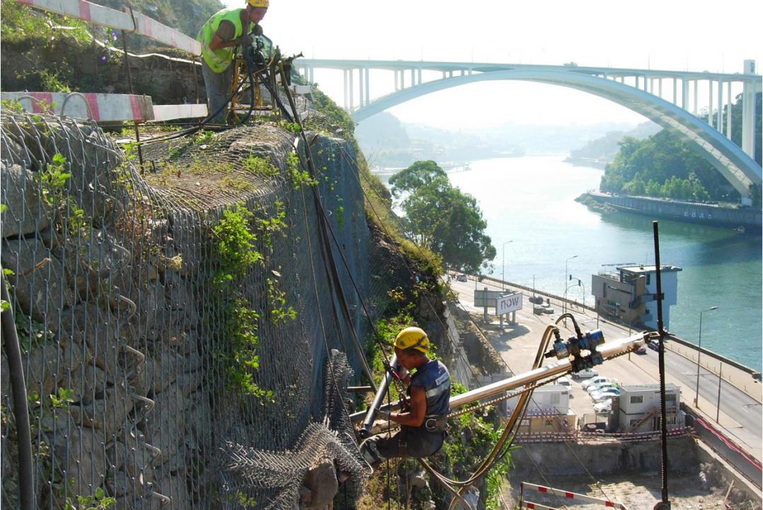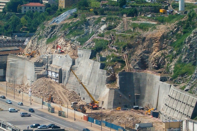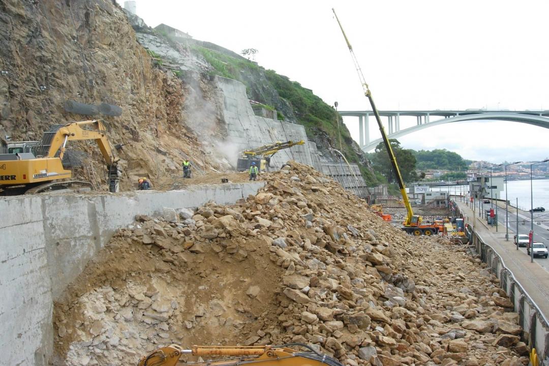 Os trabalhos baseiam-se na execução de ancoragens e pregagens definitivas, na escavação da encosta e na contenção provisória a executar na zona das caves (pregagens, ancoragens provisórias e betão projectado com fibras metálicas).